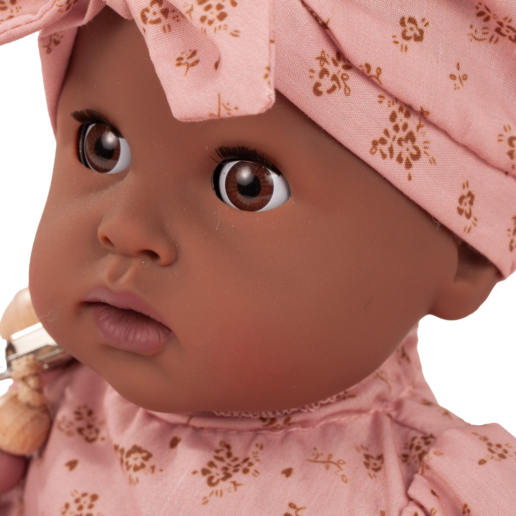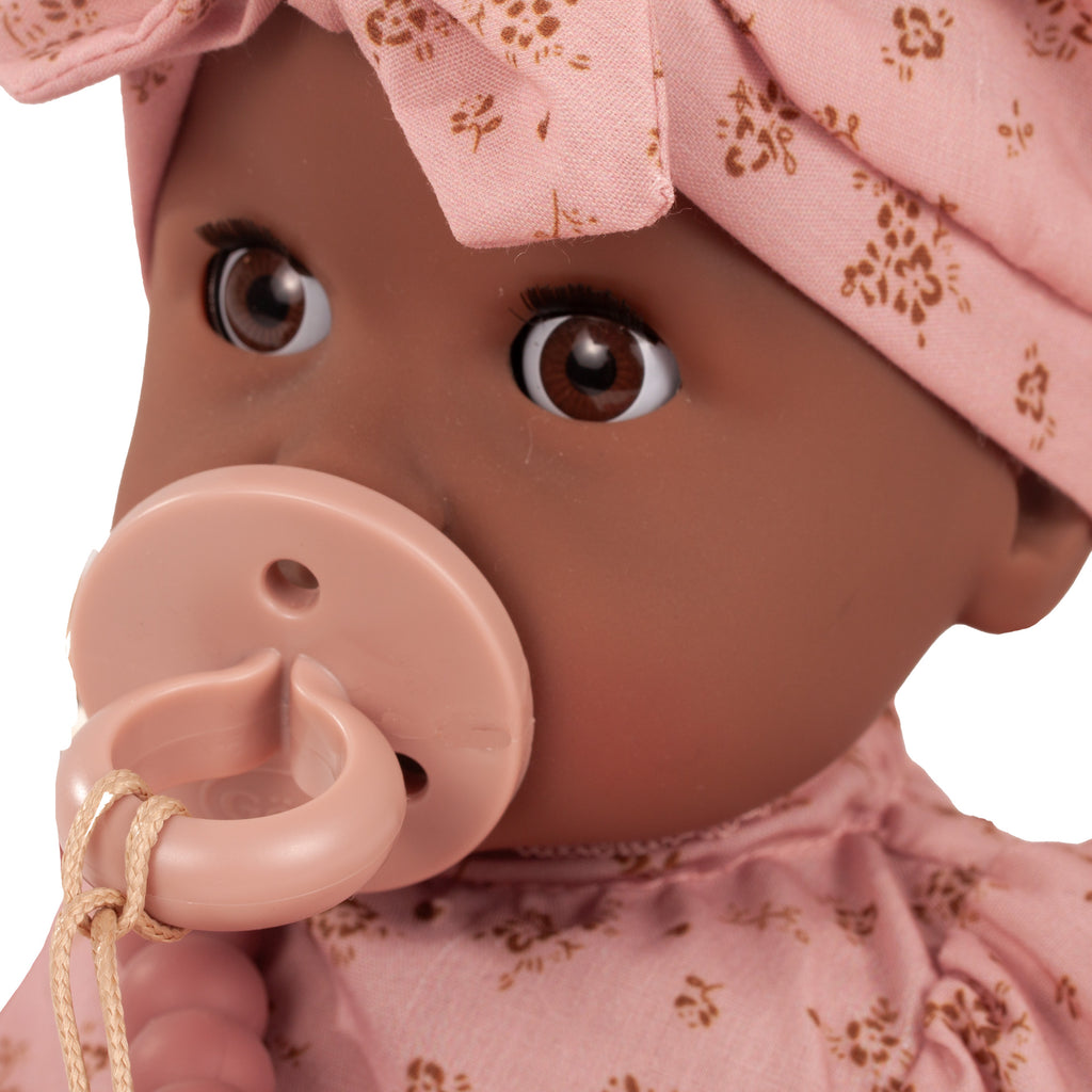 Whether in the bathtub or during imaginative role play, this doll encourages emotional development, sparks creativity, and, thanks to its soft body, is the perfect combination of a cuddle and bath doll. The set includes a pacifier with a practical pacifier chain, ensuring it is always within reach – ideal for realistic playtime. Her brown sleep eyes gently close when she is laid down, allowing for even more creative storytelling.